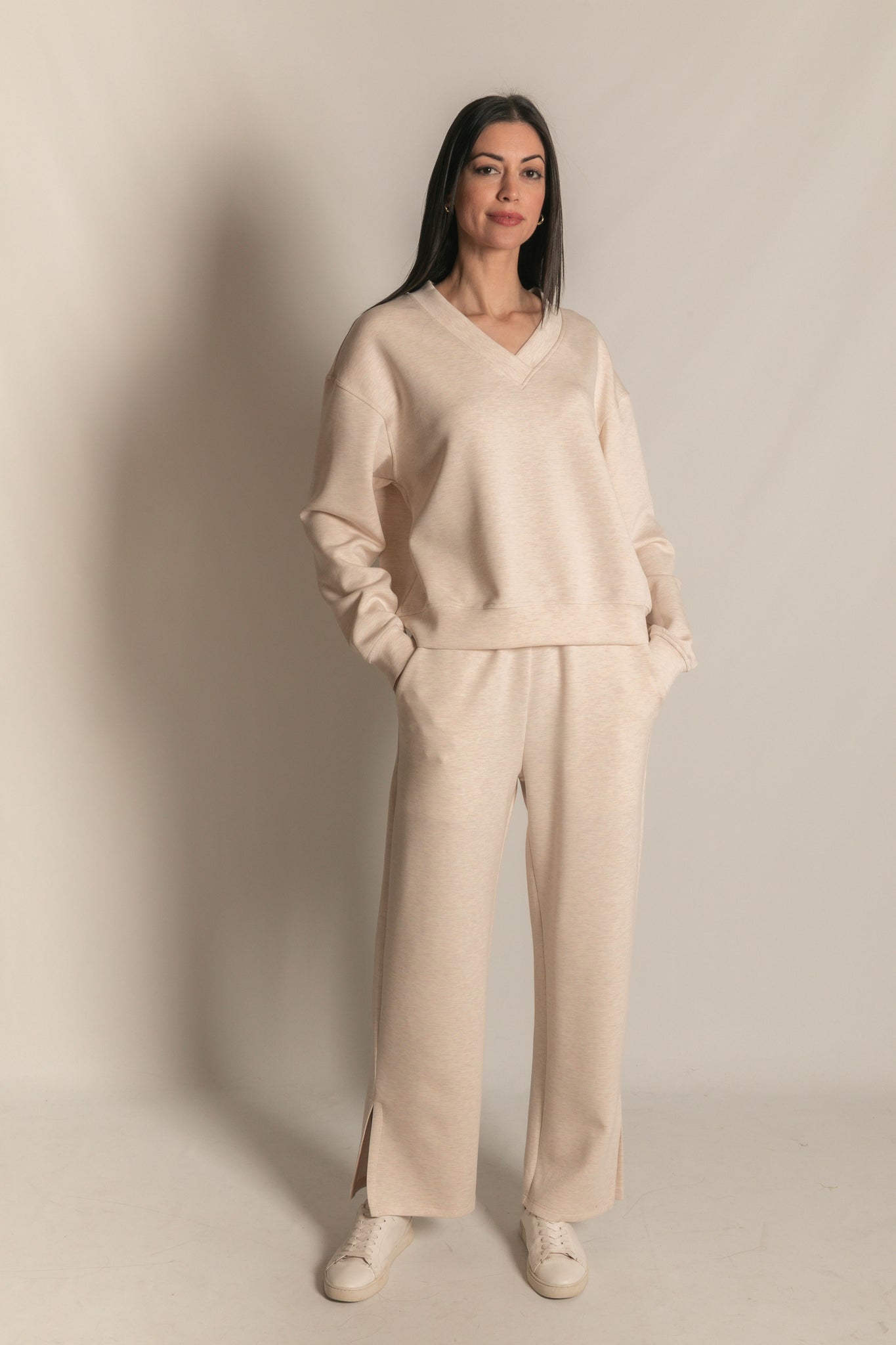 Relaxed yet refined. The Hartley Long Sleeve features a flattering V-neckline, dropped shoulders, and cuffed long sleeves for an effortlessly laid-back look. Crafted from breathable fabric with a soft, structured feel — it's a versatile essential you'll reach for year-round. Made with our signature Butter Modal™ fabrication.